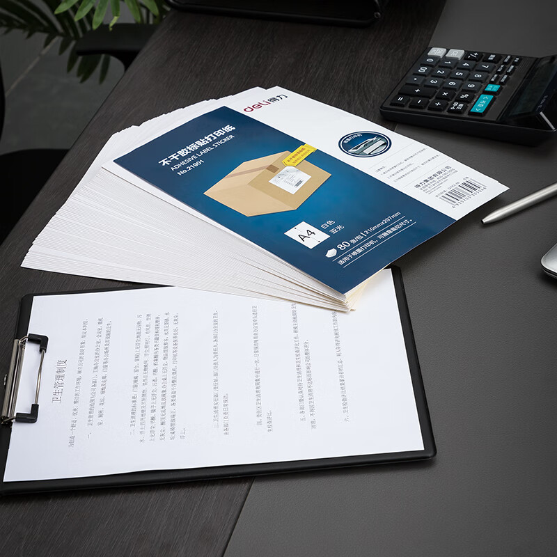 得力(deli)A4/80張不干膠標貼打印紙 帶背膠亞面銅版標簽紙 自切割21901 自營