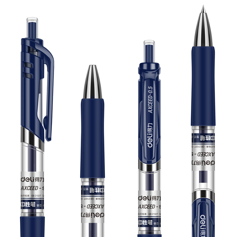 得力(deli)S01中性筆簽字筆 0.5mm子彈頭經(jīng)典辦公按動(dòng)筆水筆 墨藍(lán)12支/盒 自營(yíng)