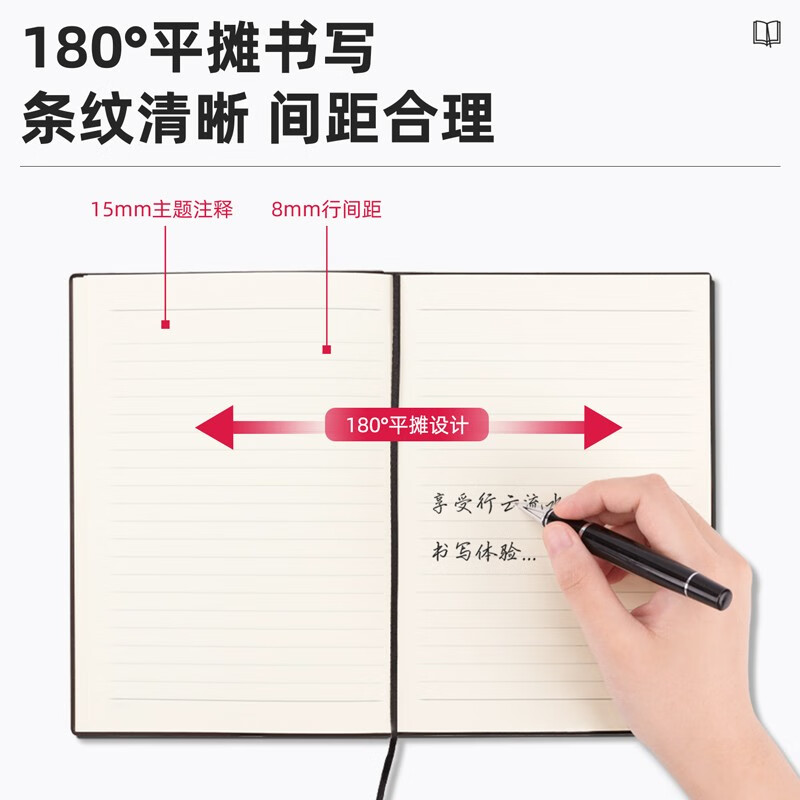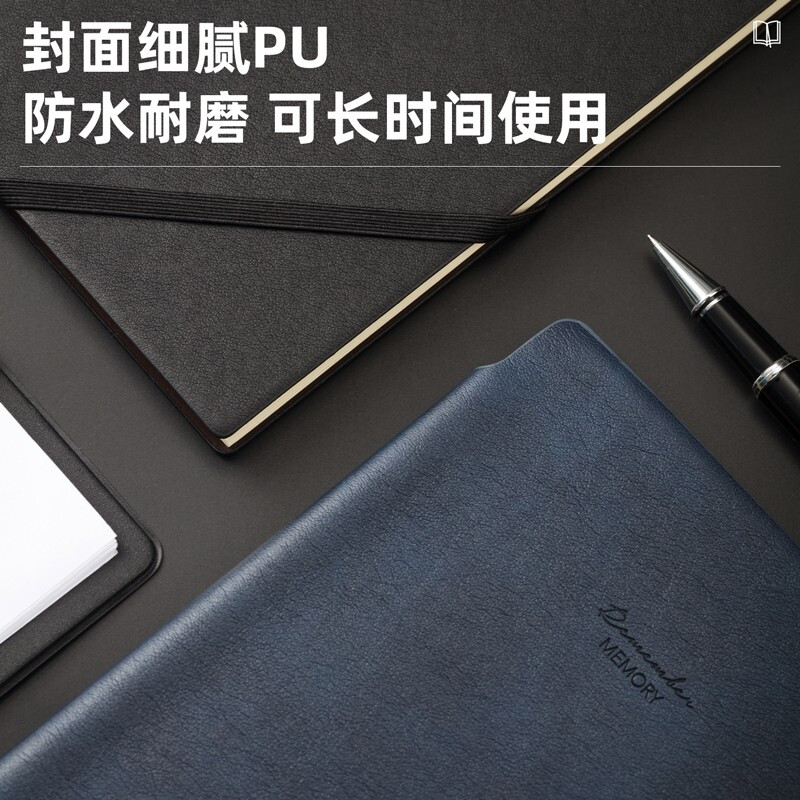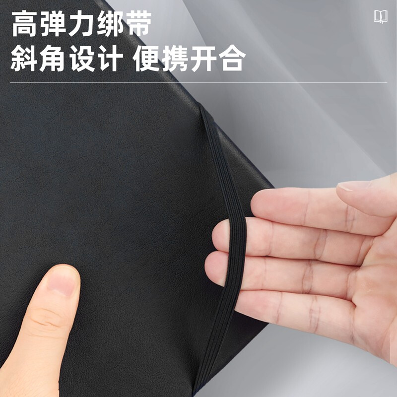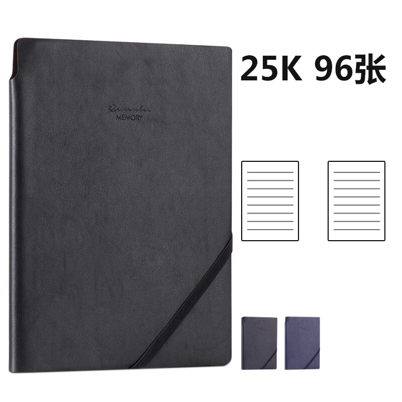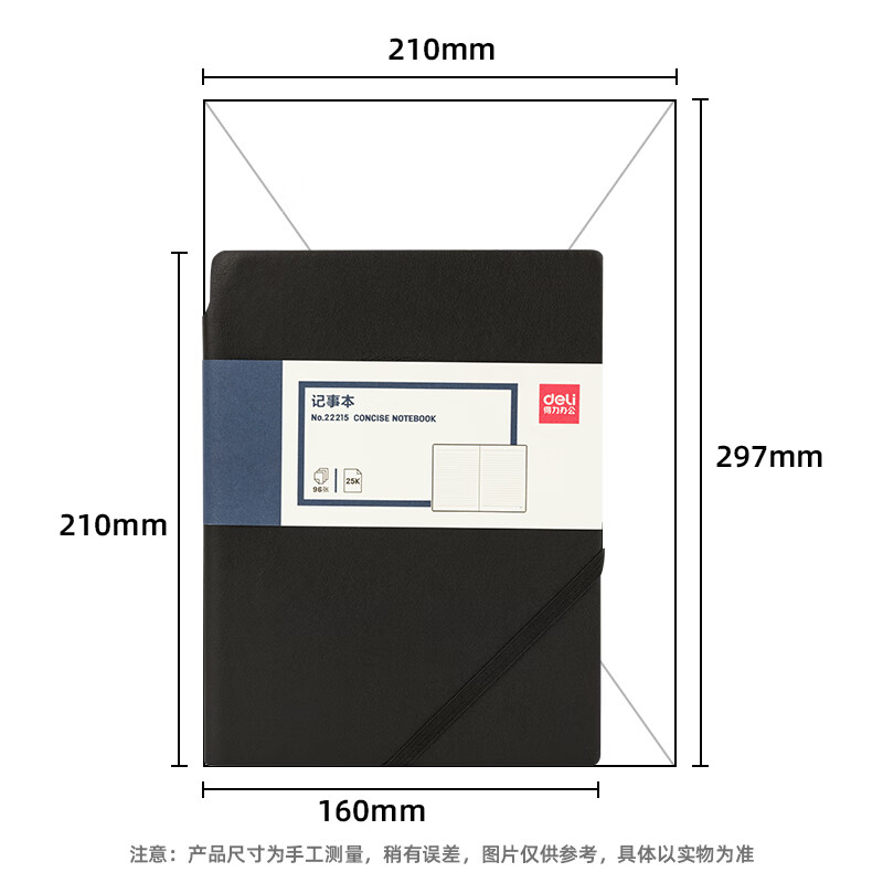 得力(deli)25K96張可插筆綁帶皮面本 記事本工作筆記本子日記本文具辦公用品 黑色22215 自營(yíng)