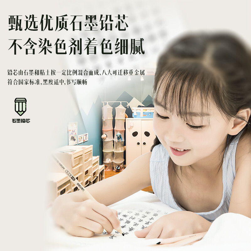 得力(deli)HB原木書寫鉛筆 三角桿素描繪圖學生鉛筆 30支/桶S943 自營