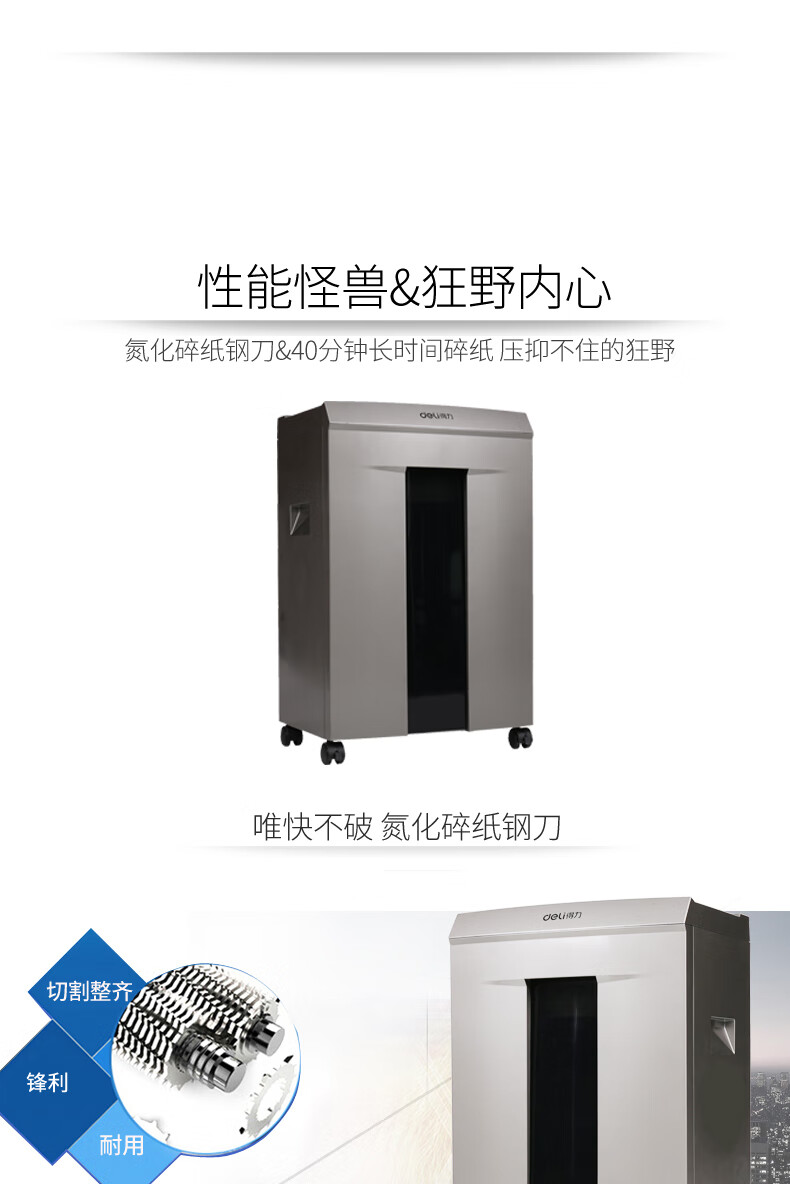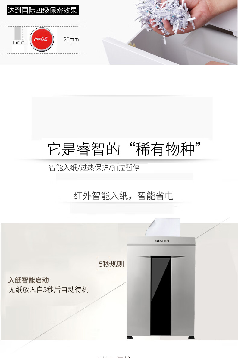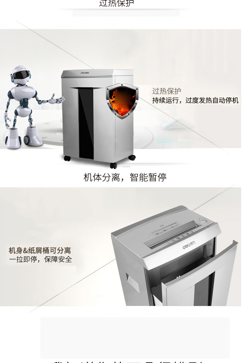 得力(deli) 5級保密辦公商用碎紙機(單次8張 20L 持續(xù)10分鐘 可碎卡碎光盤)33043