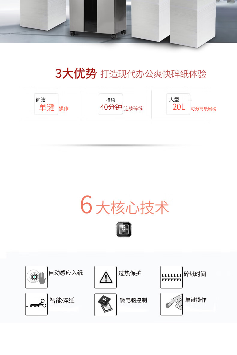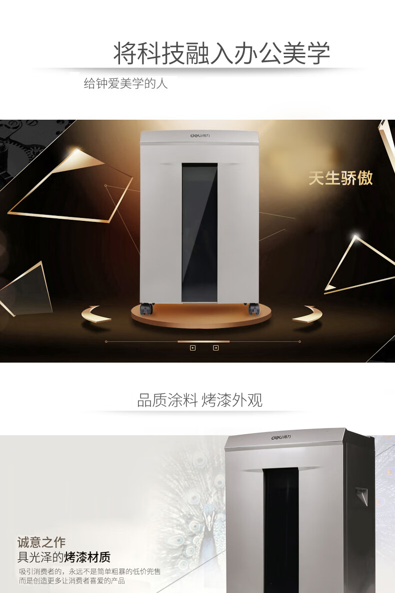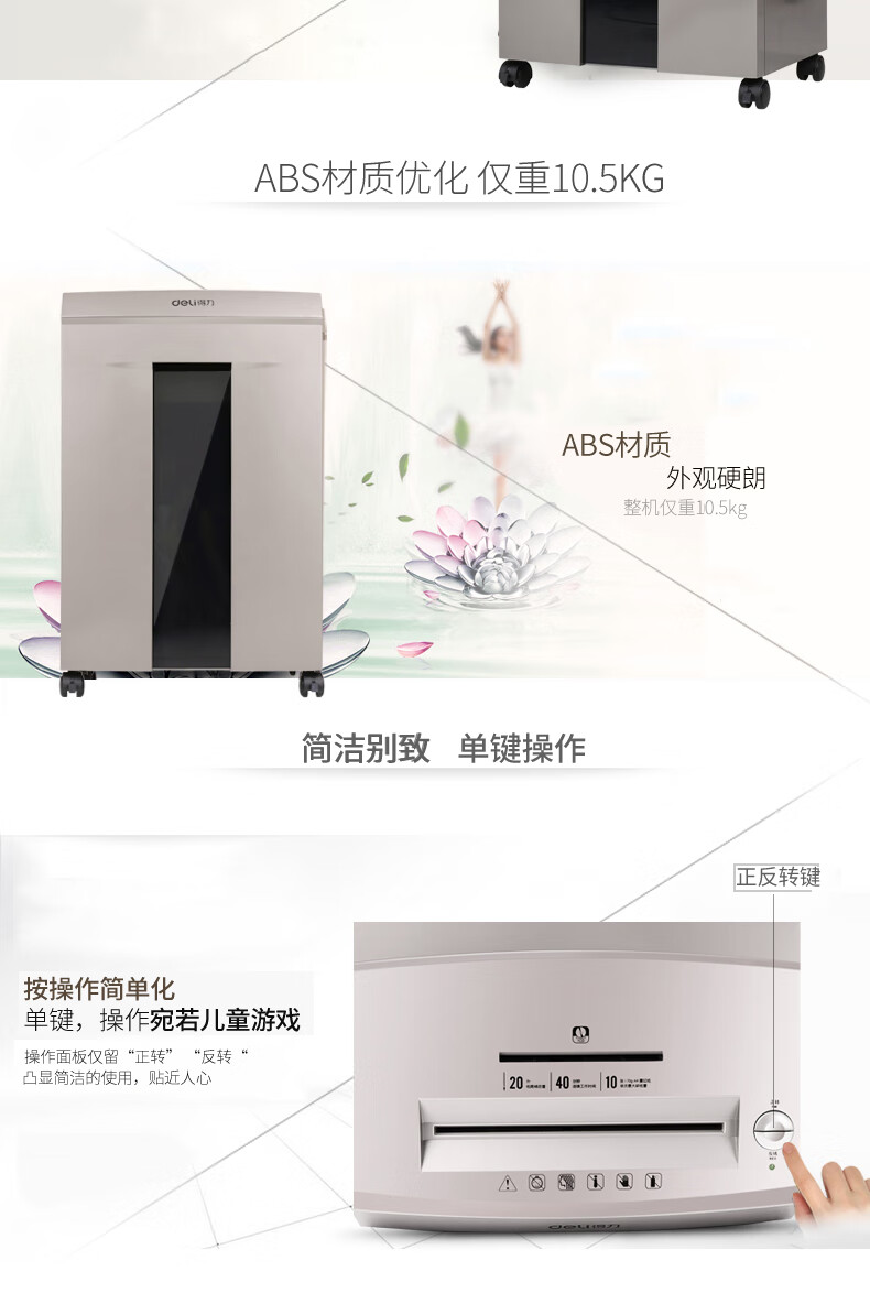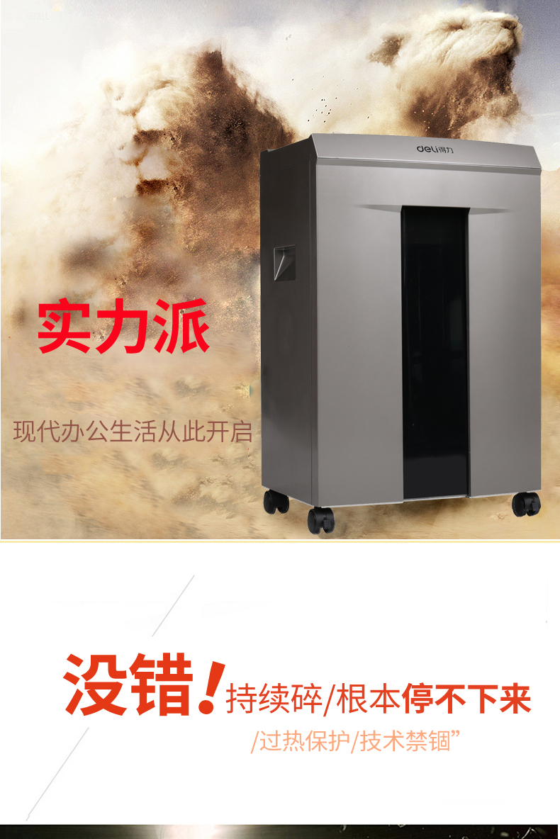 得力(deli) 5級保密辦公商用碎紙機(單次8張 20L 持續(xù)10分鐘 可碎卡碎光盤)33043
