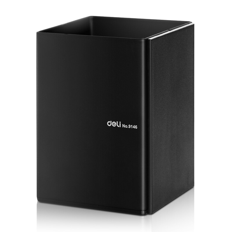 得力(deli)金屬鋼制桌面筆筒 商務(wù)辦公收納盒 黑色 自營(yíng)