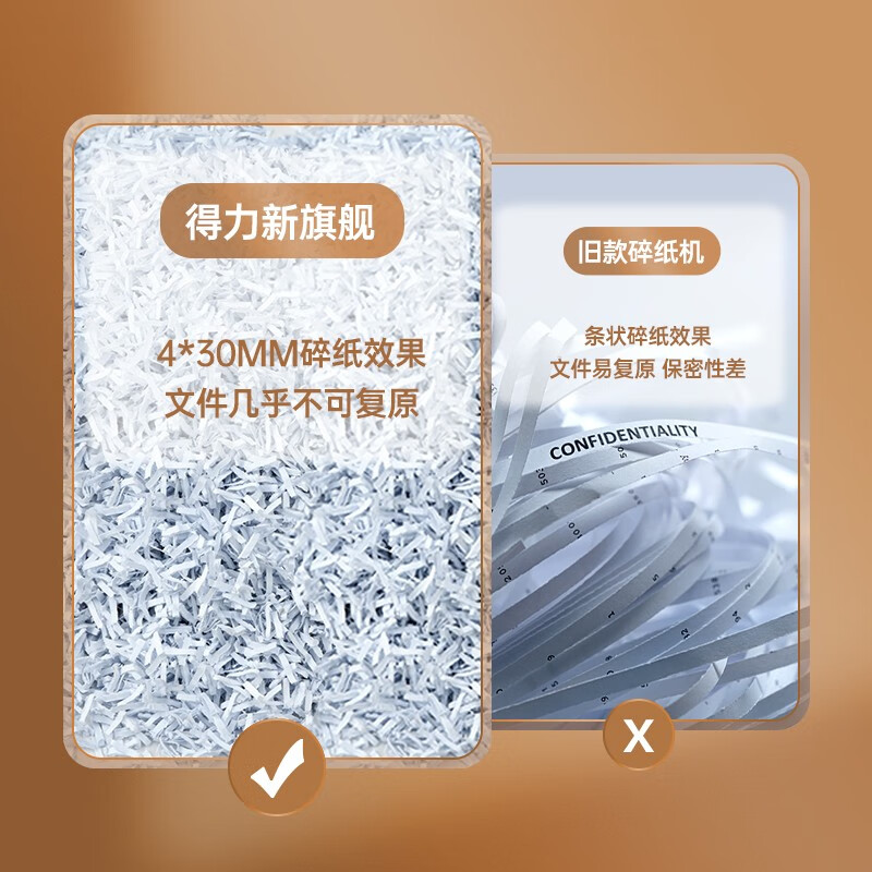 ¥454.93得力(deli) 5級(jí)保密辦公商用碎紙機(jī)(單次8張 20L 持續(xù)10分鐘 可碎卡碎光盤(pán))33043