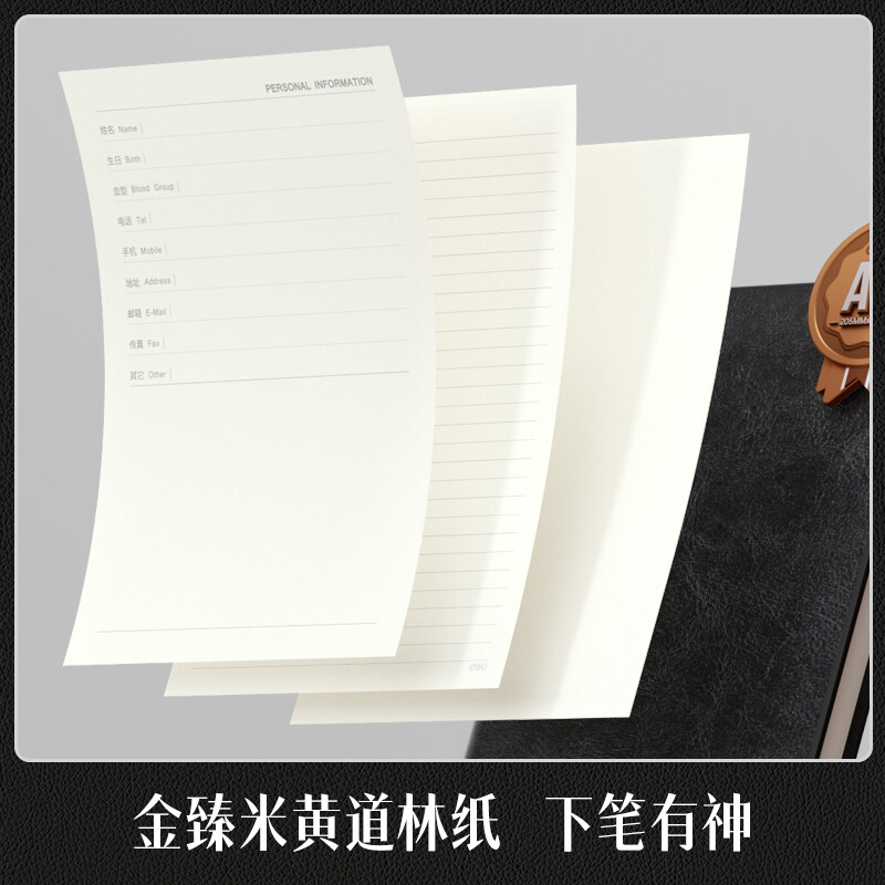 ¥22.31得力(deli)25K160張加厚商務(wù)皮面本辦公用品 會議記事本日記本筆記本子文具 黑色3186
