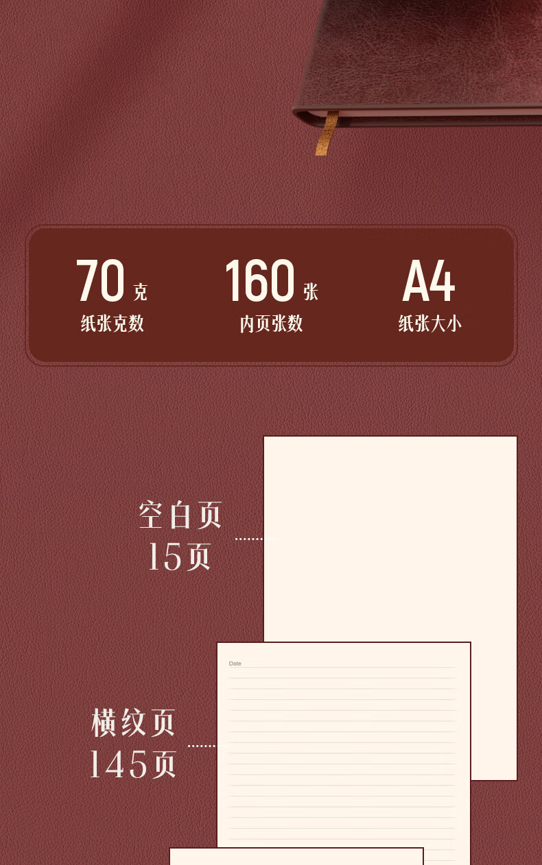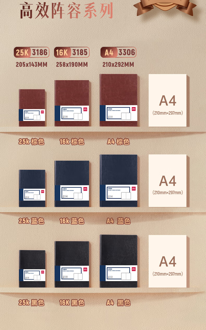 ¥17.40得力(deli)25K160張加厚商務(wù)皮面本辦公用品 日記本會議記事本筆記本子文具 棕色3186