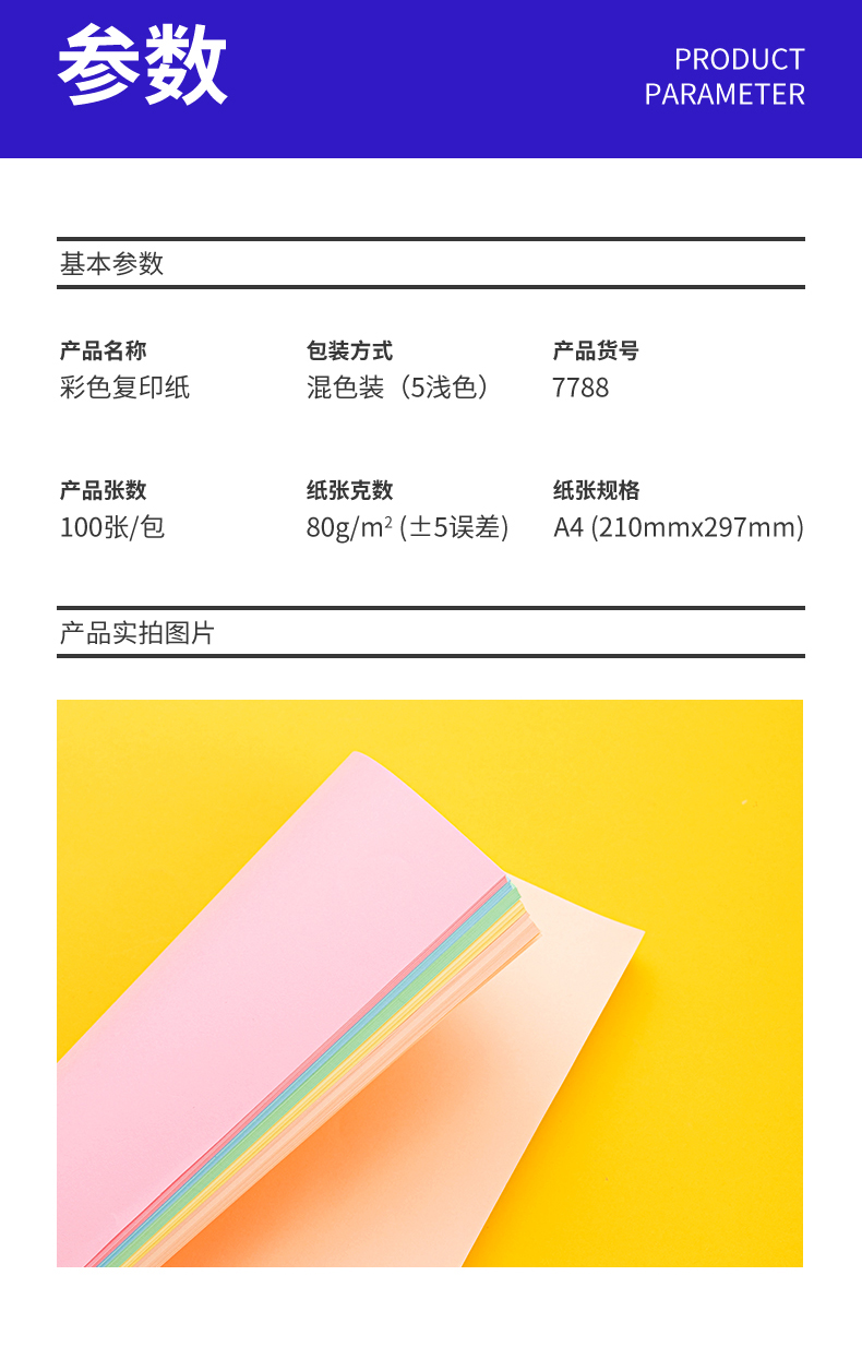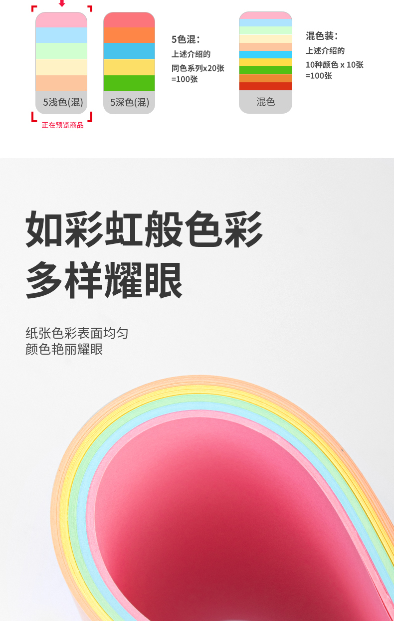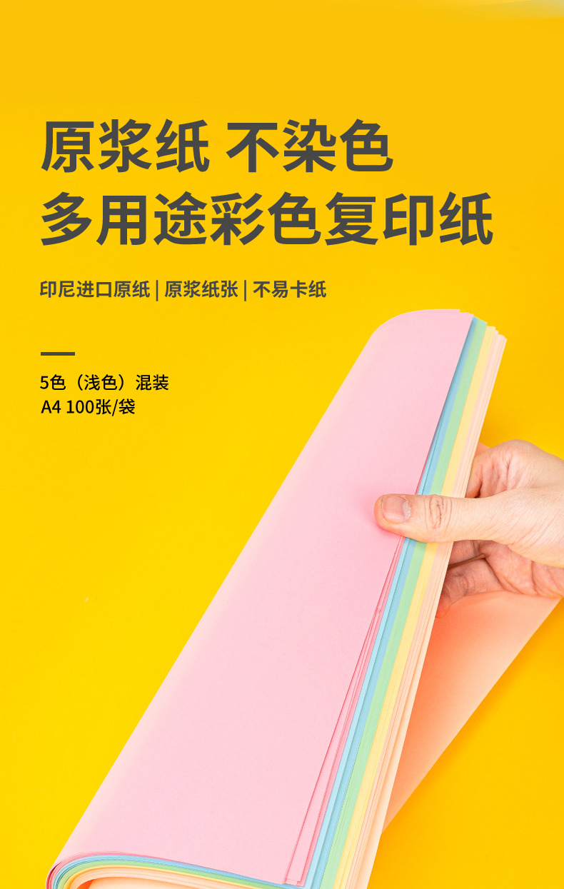 得力(deli)A4 80g 5淺色混裝復(fù)印紙 彩色打印紙 兒童手工折紙剪紙彩紙 非硬卡紙 100張/包 7788 自營(yíng)