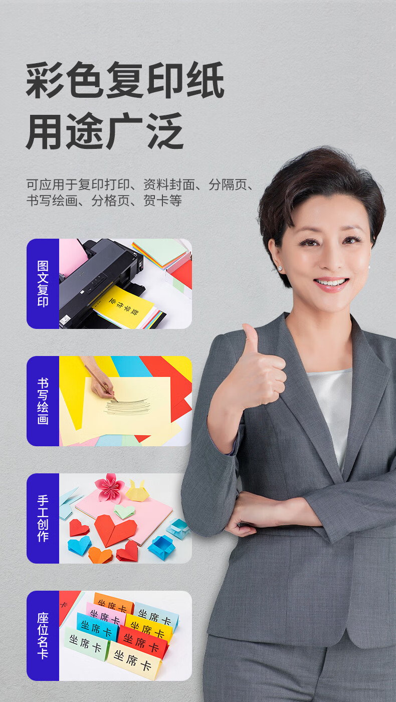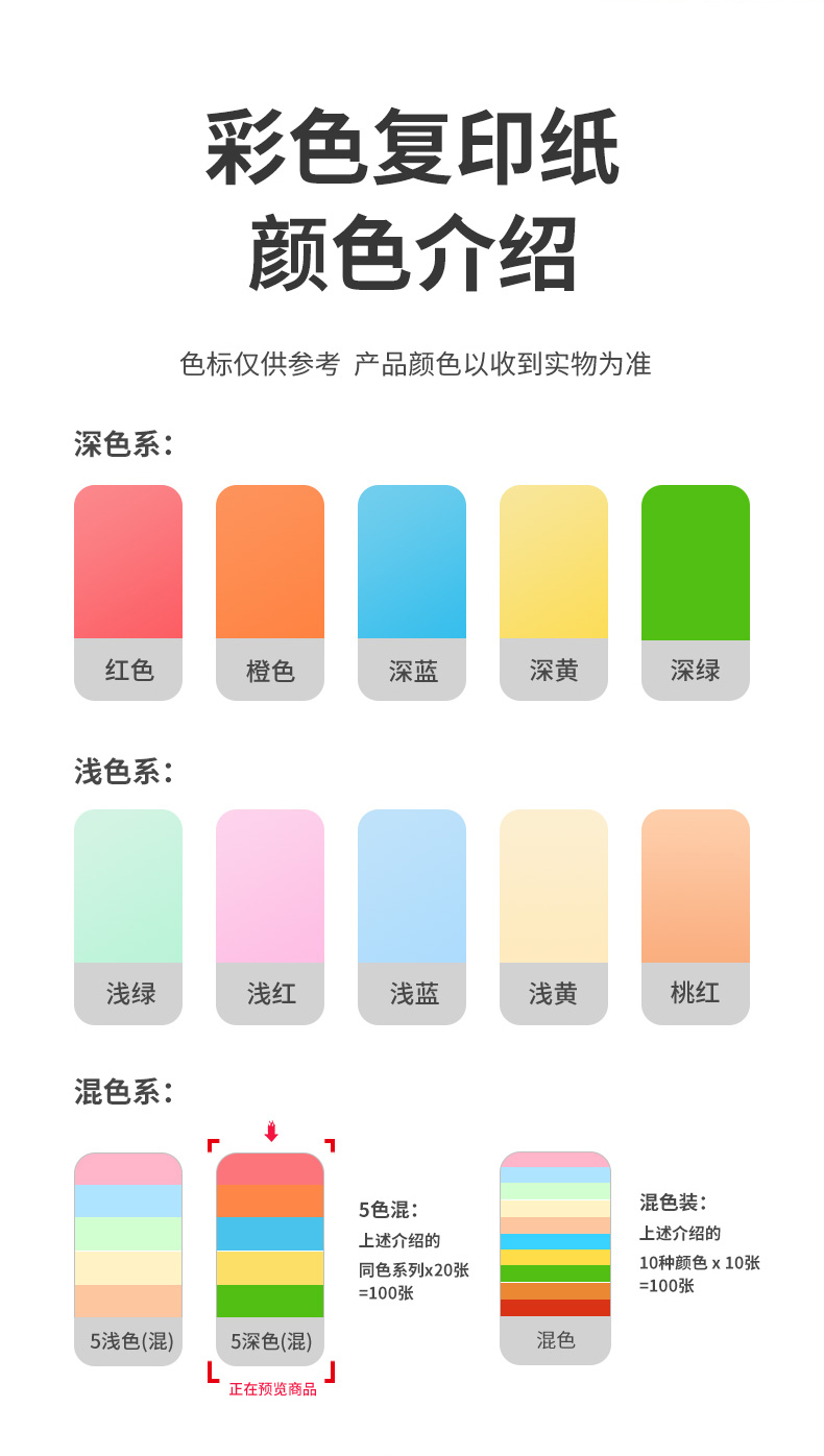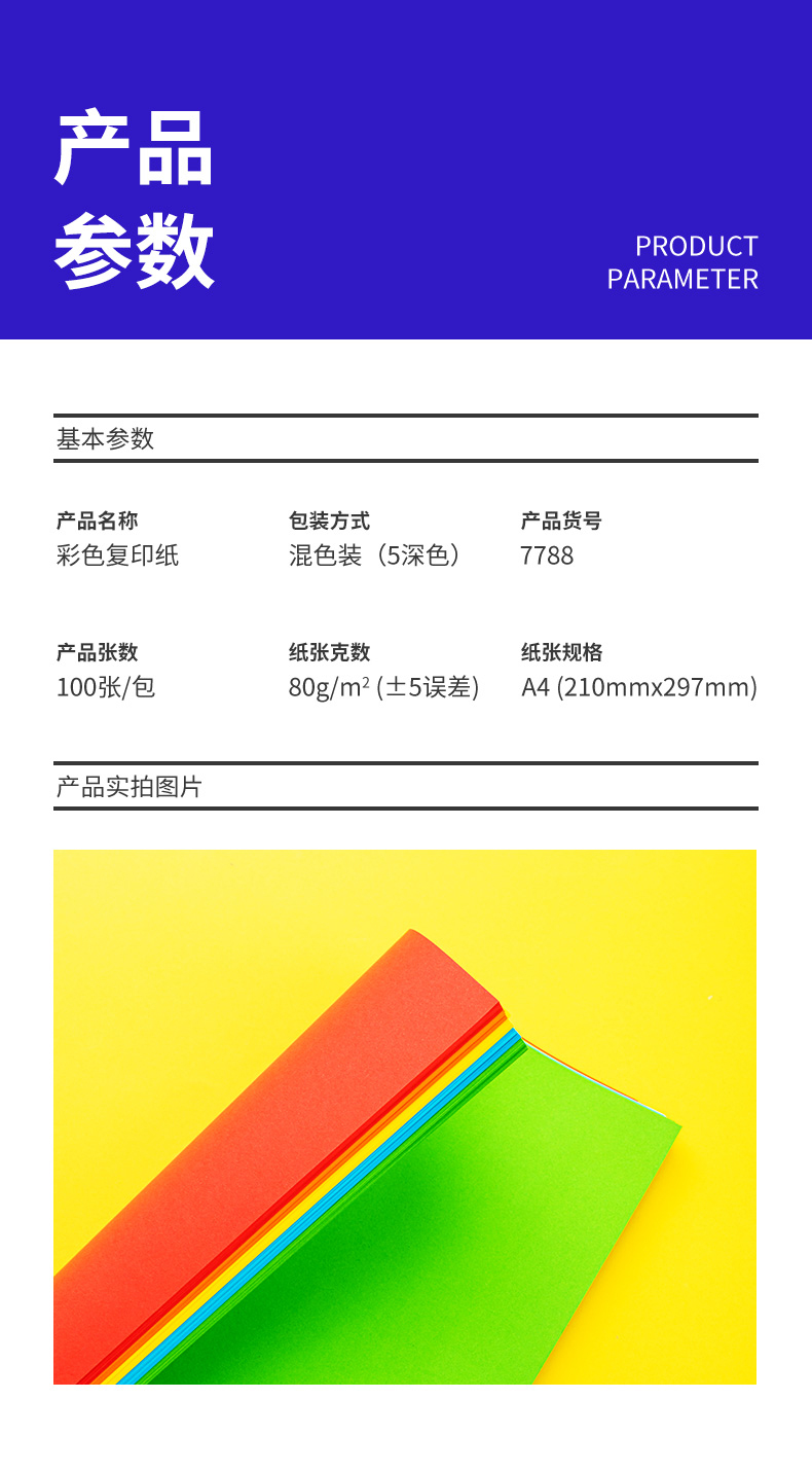 得力(deli)A4 80g 5深色混裝復(fù)印紙 彩色打印紙 兒童手工折紙剪紙彩紙 非硬卡紙 100張/包 7788 自營