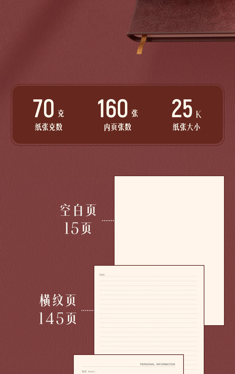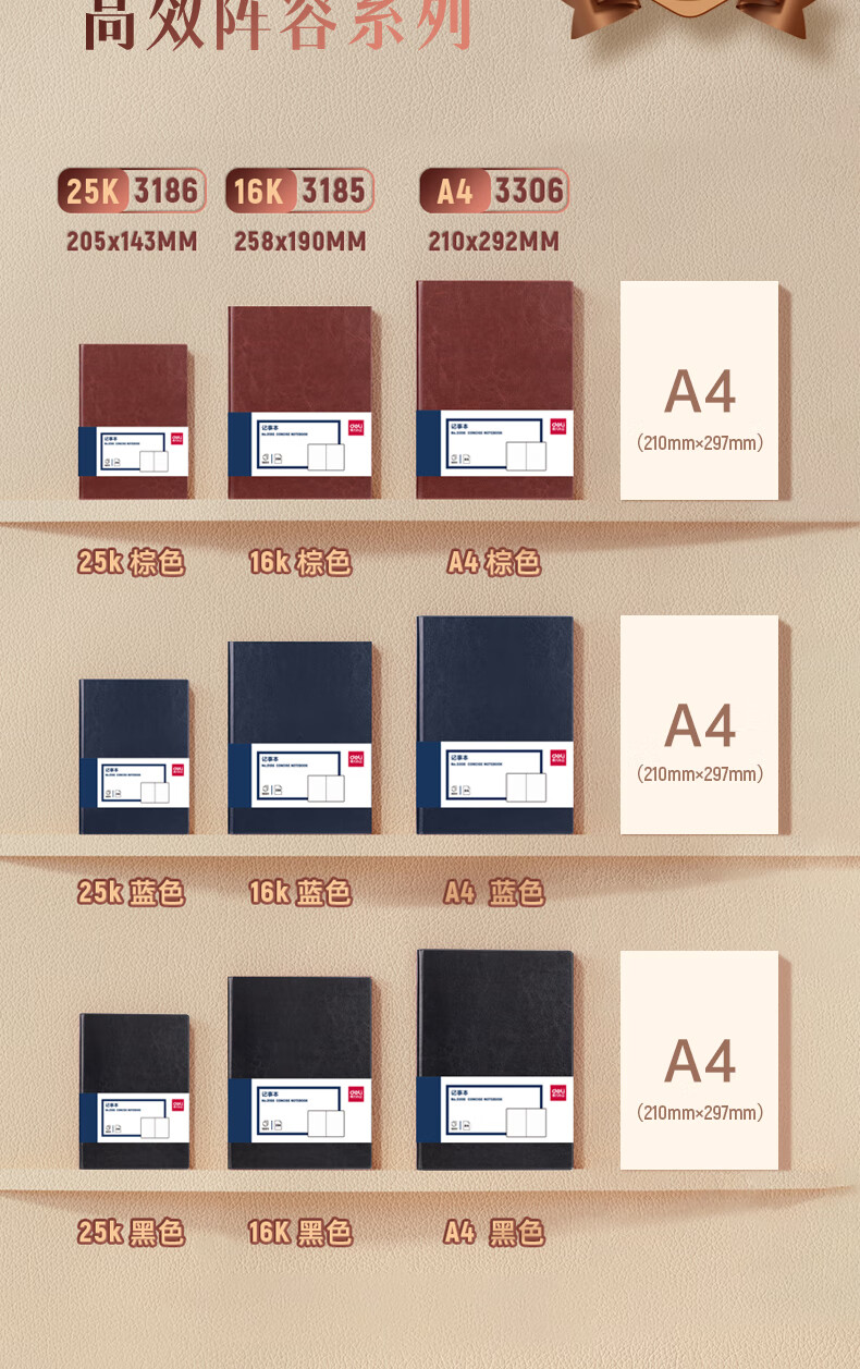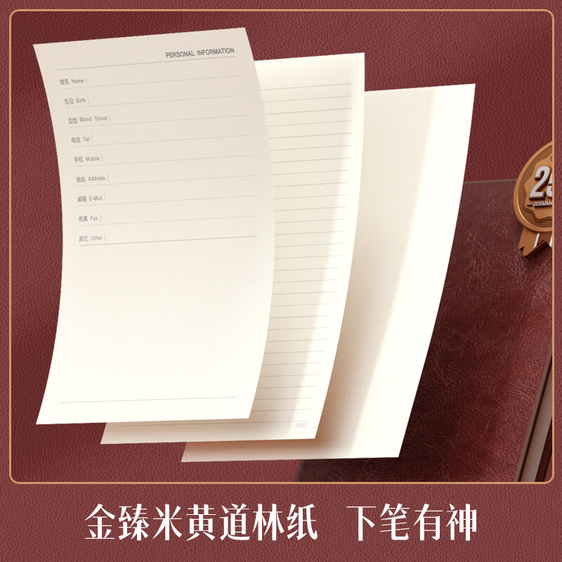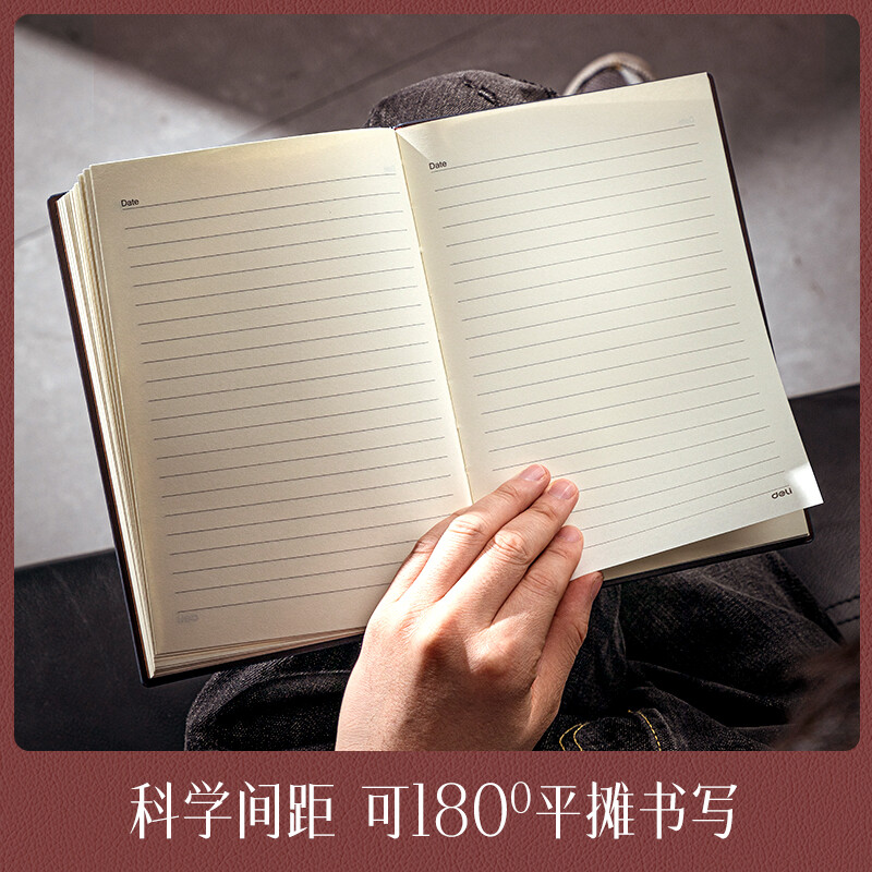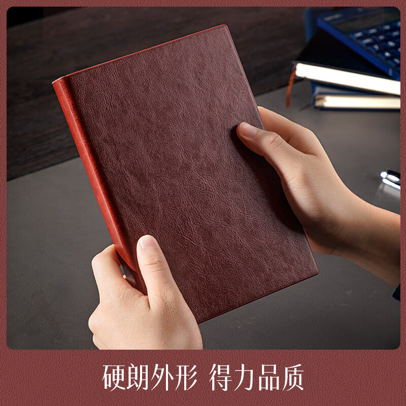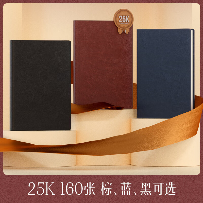 ¥17.40得力(deli)25K160張加厚商務(wù)皮面本辦公用品 日記本會議記事本筆記本子文具 棕色3186
